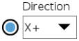Az Irány program csomópont tulajdonság-tengelyekhez vagy TCP-khez viszonyított mozgatást határoz meg. A robot az Irány programcsomópont által meghatározott pályán mozog, amíg a mozgást egy Hozzáadás Eddig, amíg (Hozzáadás addig) feltétel le nem állítja.
