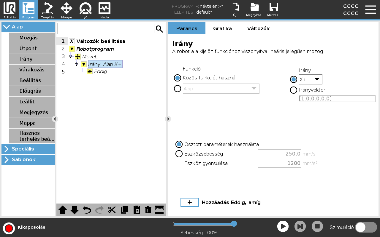 | Irány mozgatás hozzáadása a robotprogramhoz |