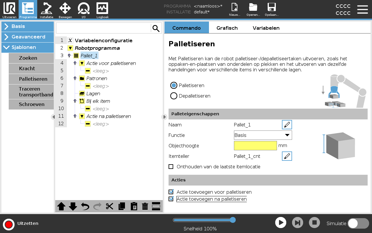 | Opties voor het aanpassen van een palletiseringsprogramma |