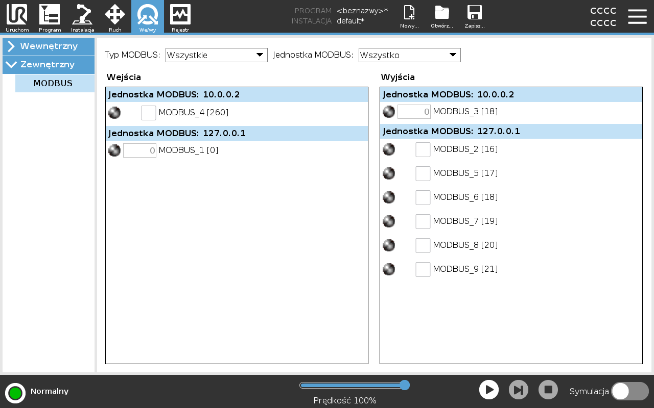 We/Wy klienta MODBUS