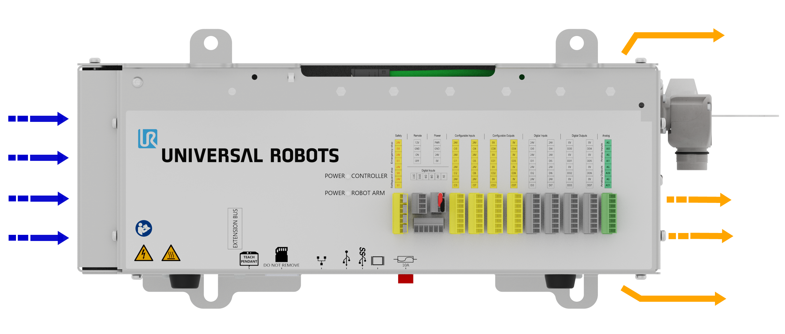För mer information om värmeavledning, se Styrenhetens värmeavledning. Följande illustration visar luftflödet.