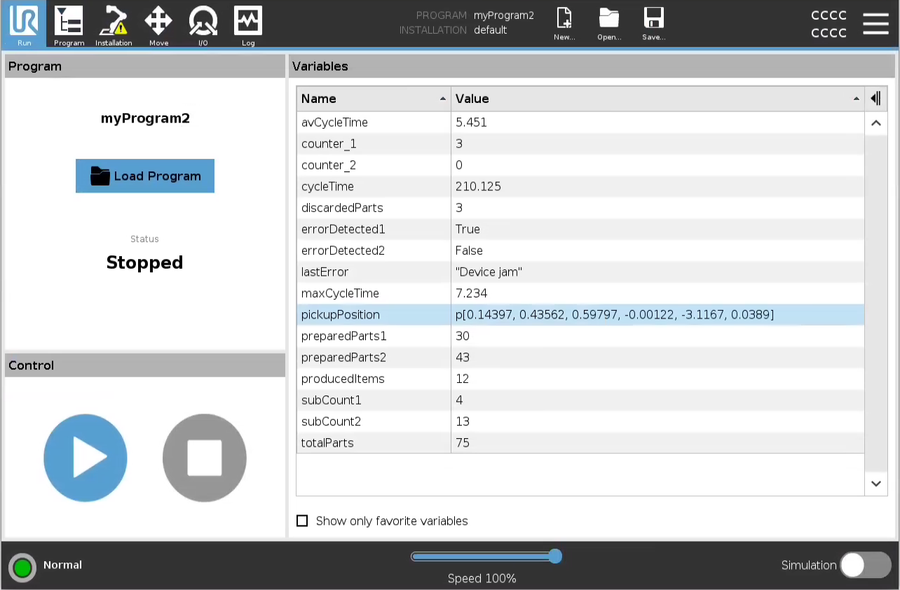 Fönstret Variabler visar listan över variabler som används av program för att lagra och uppdatera värden under körning.