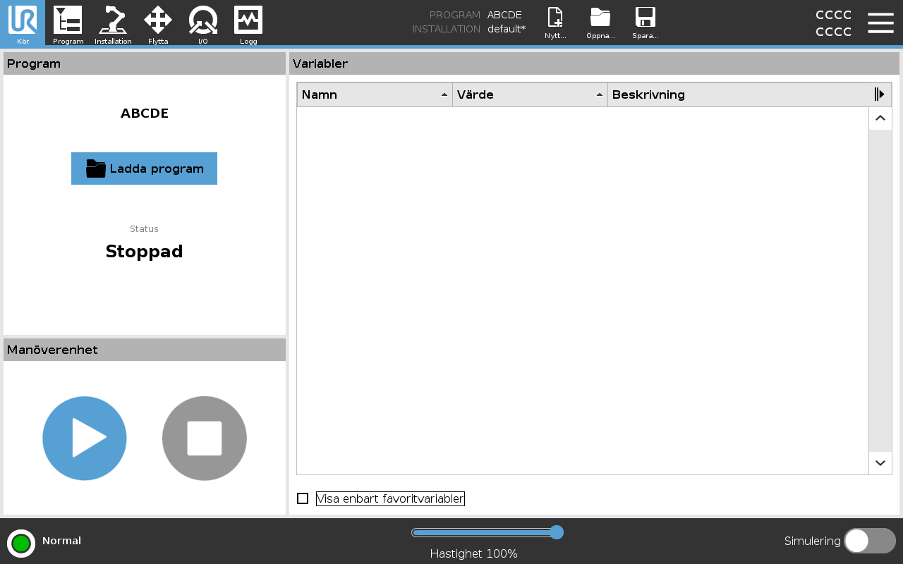Du kan visa valda variabler genom att använda alternativet Visa endast favoritvariabler. För att visa favoritvariabler