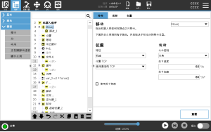 “移动”屏幕右下角的共享参数适用于从机械臂的上一个位置到命令下的第一个路点的移动,以及从该路点到每个后续每个路点的移动。 “移动”命令设置不适用于从“移动”命令下的最后一个路点开始的路径。
