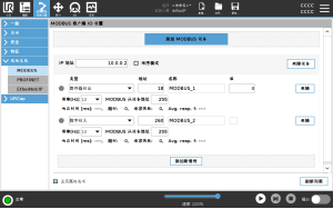 在这里,可以设置MODBUS 客户端(主)信号。 可以使用输入/输出信号(寄存器或数字)创建与指定IP地址上的MODBUS服务器(或从站)的连接。 每个信号都有一个唯一的名称,因此可以在程序中使用。