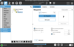 如果您创建一个码垛程序,那么您可以在程序放置物体时使路点移动得慢一些,而在移动去拾取另一个物体时移动得快一些。