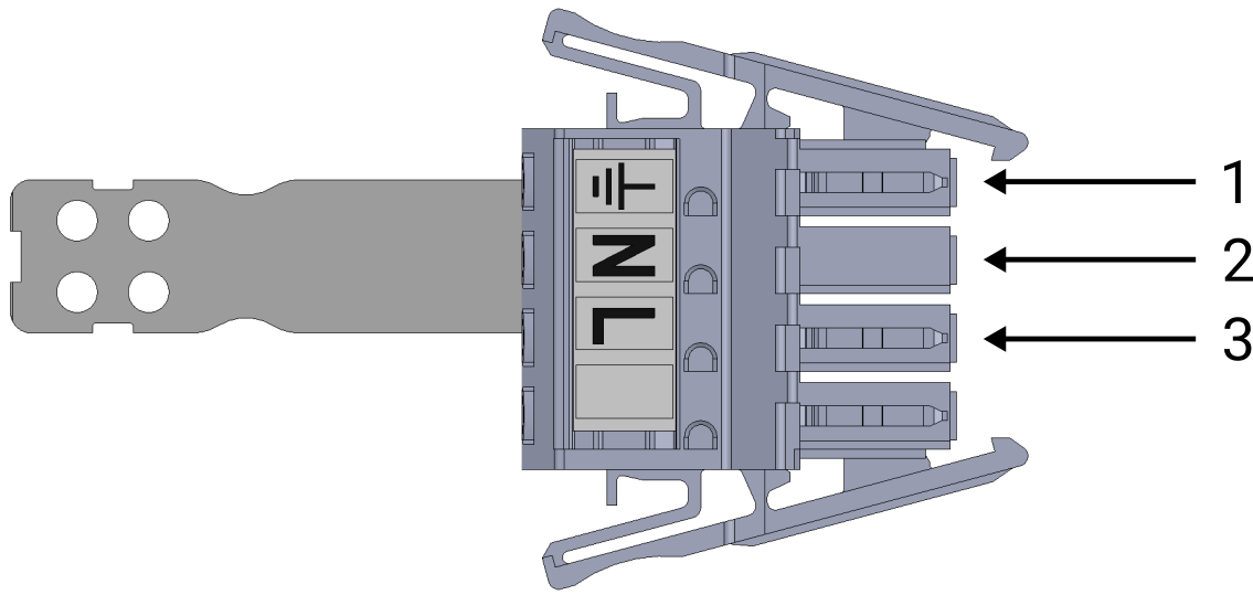 使用双极断路器保护电源输入连接器,因为它也可以用作开关。 如果使用保险丝,则必须在保险丝和电源输入连接器之间安装双极开关。 |