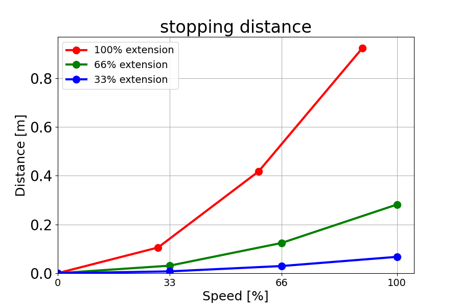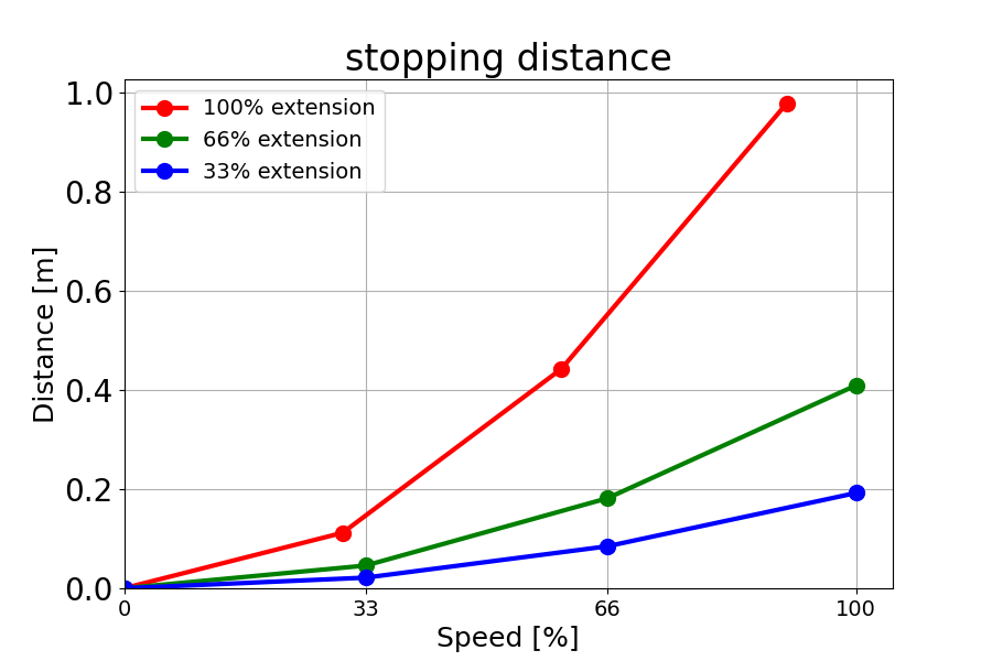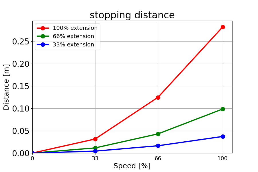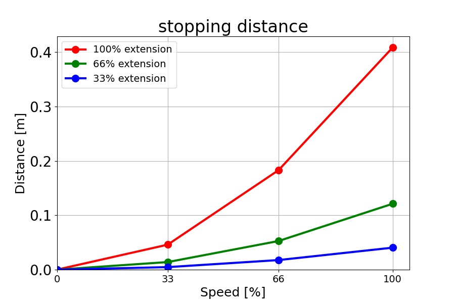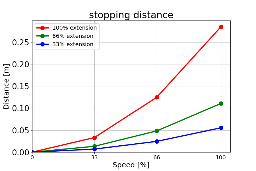 负载为 18 kg 的 66% 时的停止距离(米)