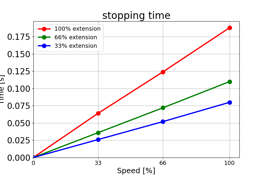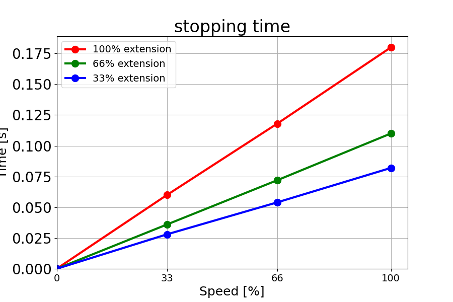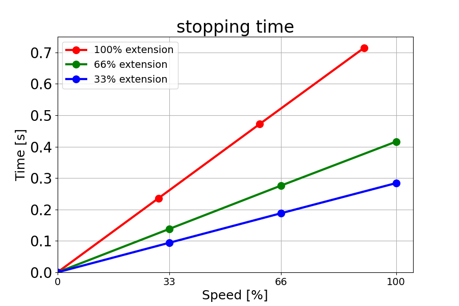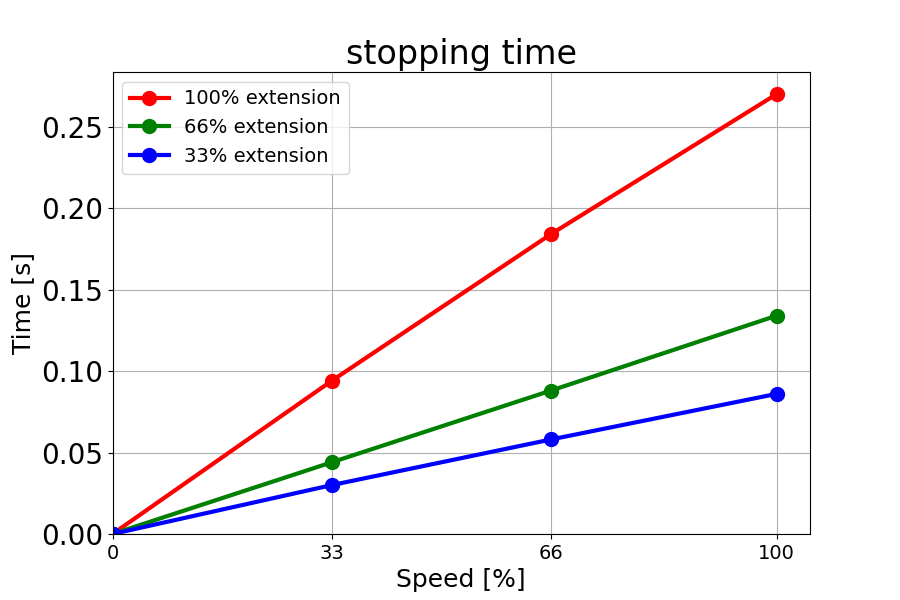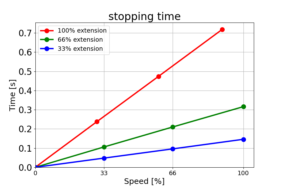 负载为 18 kg 的 66% 时的停止时间(秒)。