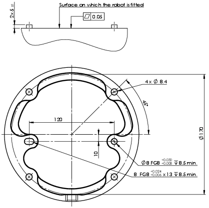 机器人安装的尺寸和孔图案。 |